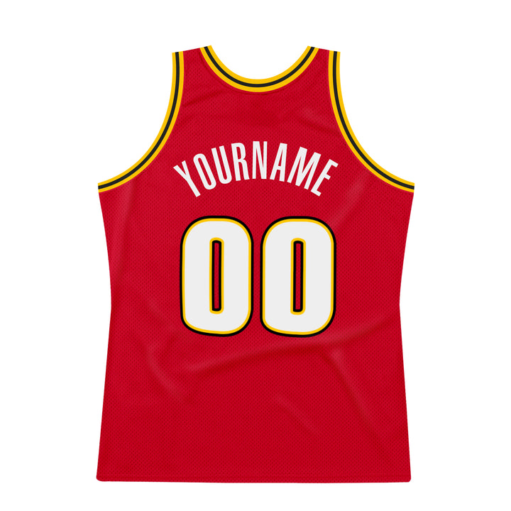 Custom Red White-Gold Authentic Throwback Basketball Jersey