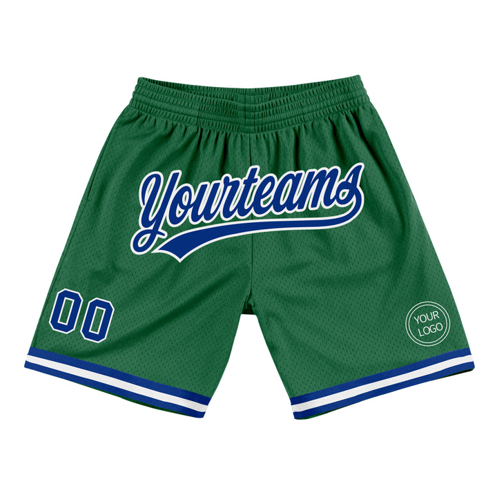 Custom Kelly Green Royal-White Authentic Throwback Basketball Shorts
