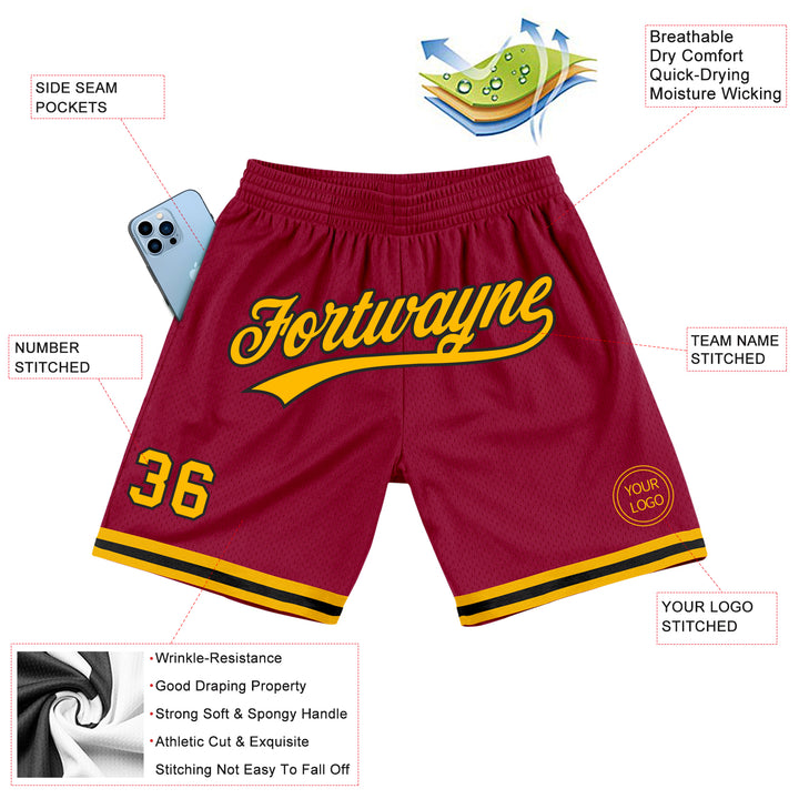 Custom Maroon Gold-Black Authentic Throwback Basketball Shorts