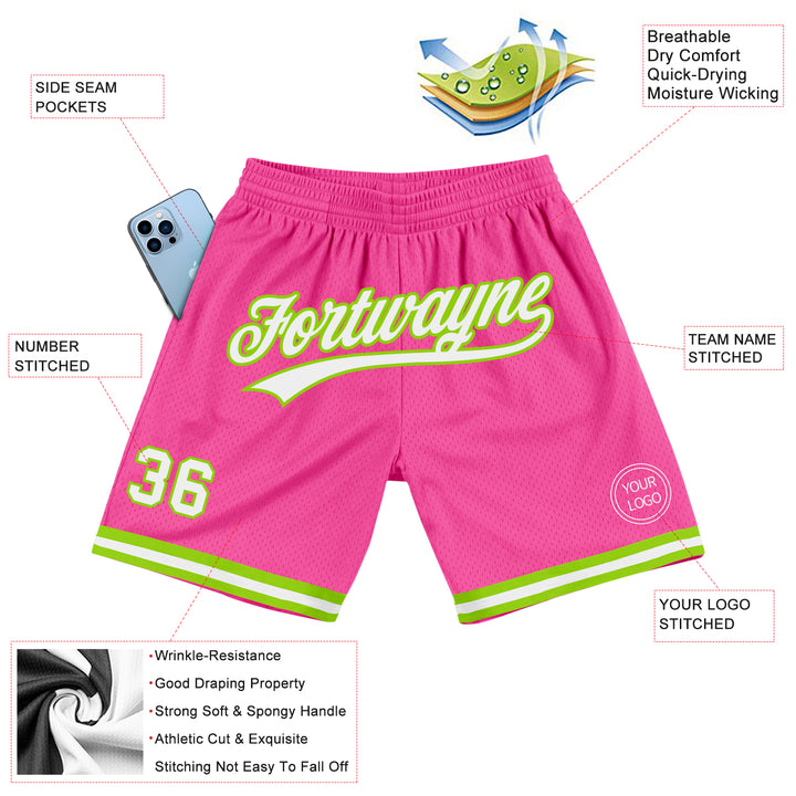 Custom Pink White-Neon Green Authentic Throwback Basketball Shorts
