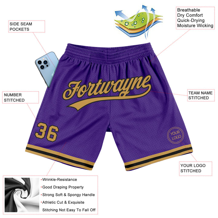 Custom Purple Old Gold-Black Authentic Throwback Basketball Shorts
