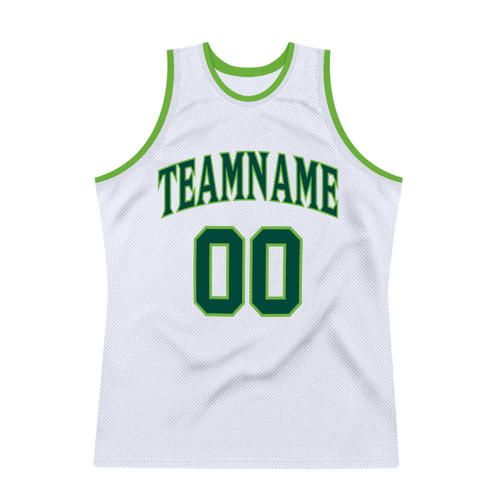 Custom White Hunter Green-Neon Green Authentic Throwback Basketball Jersey