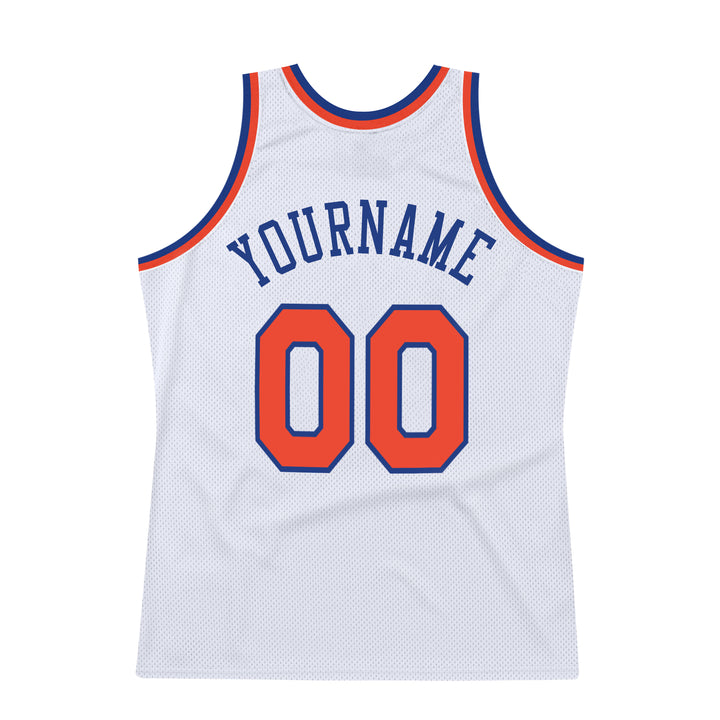 Custom White Orange-Royal Authentic Throwback Basketball Jersey