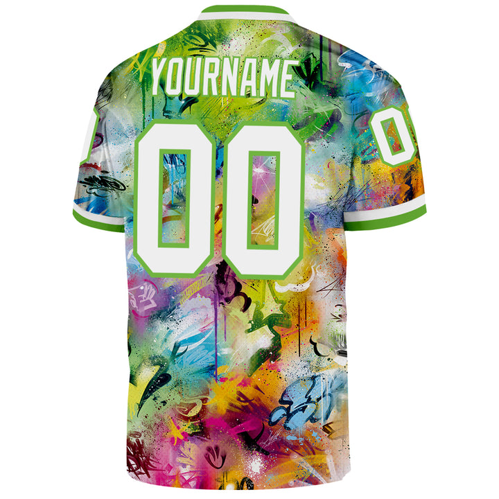 Custom Graffiti Pattern White-Neon Green 3D Authentic Throwback Football Jersey