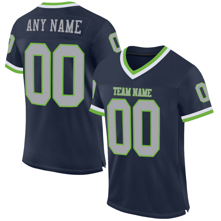 Custom Navy Gray-Neon Green Mesh Authentic Throwback Football Jersey