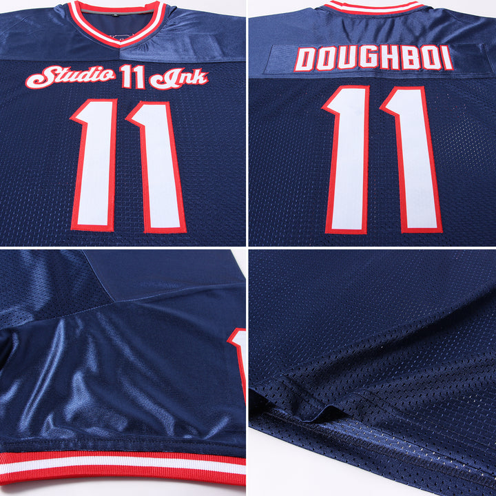 Custom Navy White-Red Mesh Authentic Throwback Football Jersey