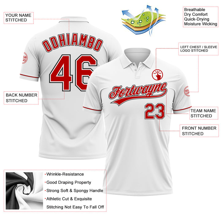 Custom White Red-Black Performance Vapor Golf Polo Shirt