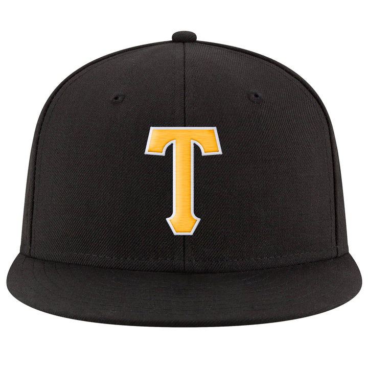 Custom Black Gold-White Stitched Adjustable Snapback Hat
