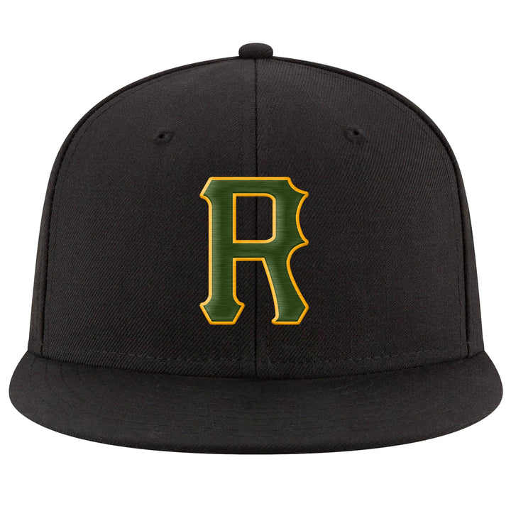 Custom Black Green-Gold Stitched Adjustable Snapback Hat