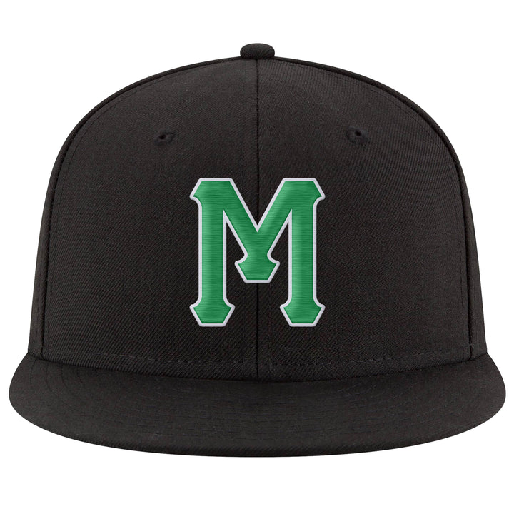 Custom Black Kelly Green-White Stitched Adjustable Snapback Hat