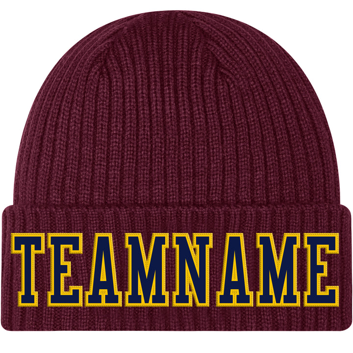Custom Burgundy Navy-Gold Stitched Cuffed Knit Hat
