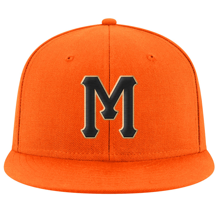 Custom Orange Black-Old Gold Stitched Adjustable Snapback Hat