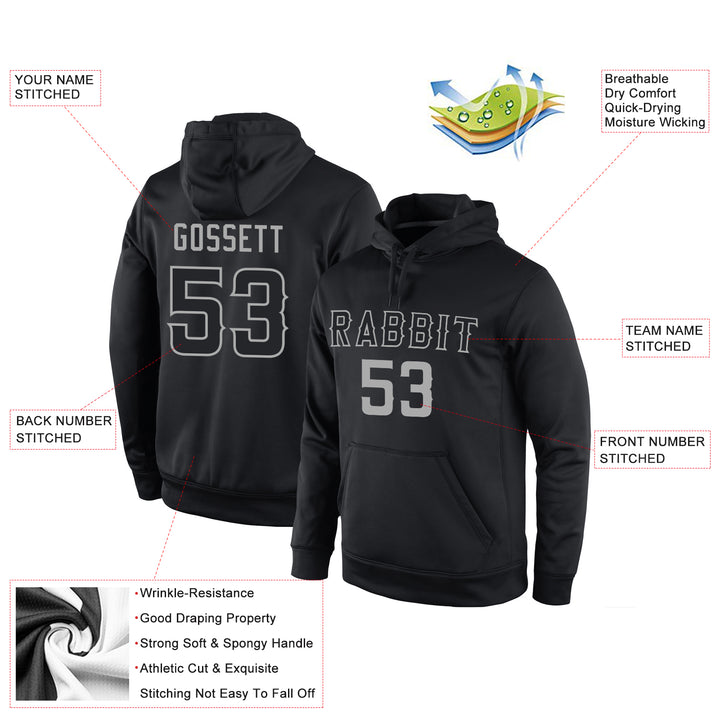 Custom Stitched Black Black-Gray Sports Pullover Sweatshirt Hoodie