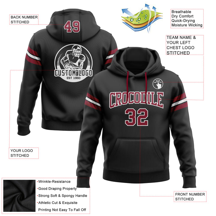 Custom Stitched Black Crimson-White Football Pullover Sweatshirt Hoodie