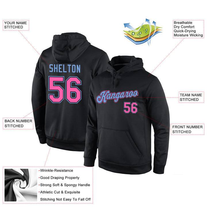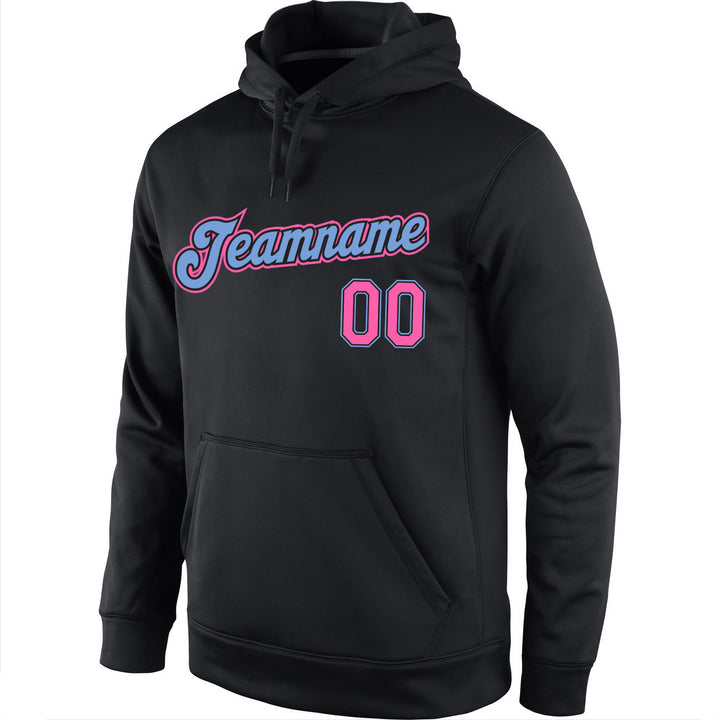Custom Stitched Black Pink-Light Blue Sports Pullover Sweatshirt Hoodie