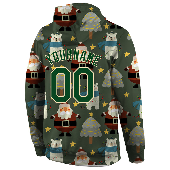 Custom Stitched Green Green-Cream Christmas 3D Sports Pullover Sweatshirt Hoodie