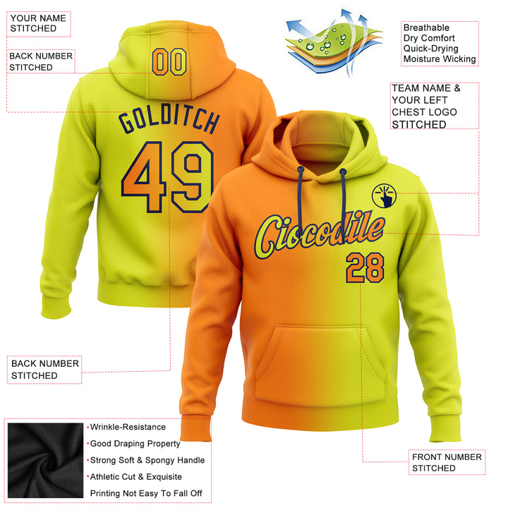 Custom Stitched Neon Yellow Bay Orange-Navy Gradient Fashion Sports Pullover Sweatshirt Hoodie