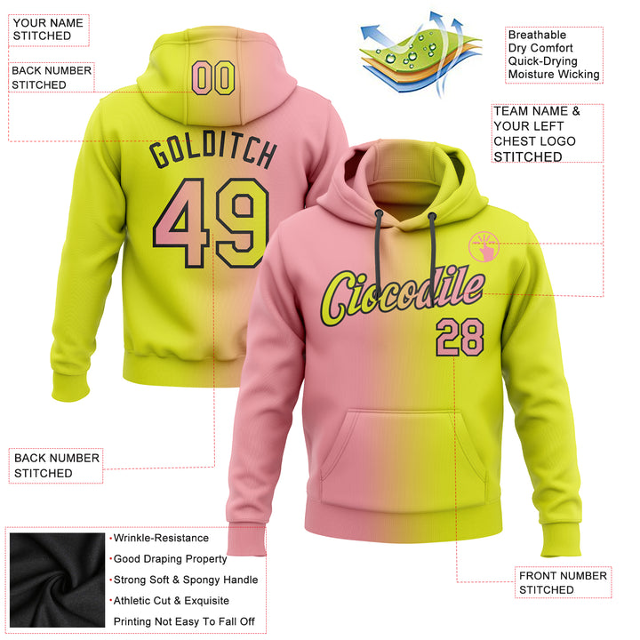 Custom Stitched Neon Yellow Medium Pink-Black Gradient Fashion Sports Pullover Sweatshirt Hoodie