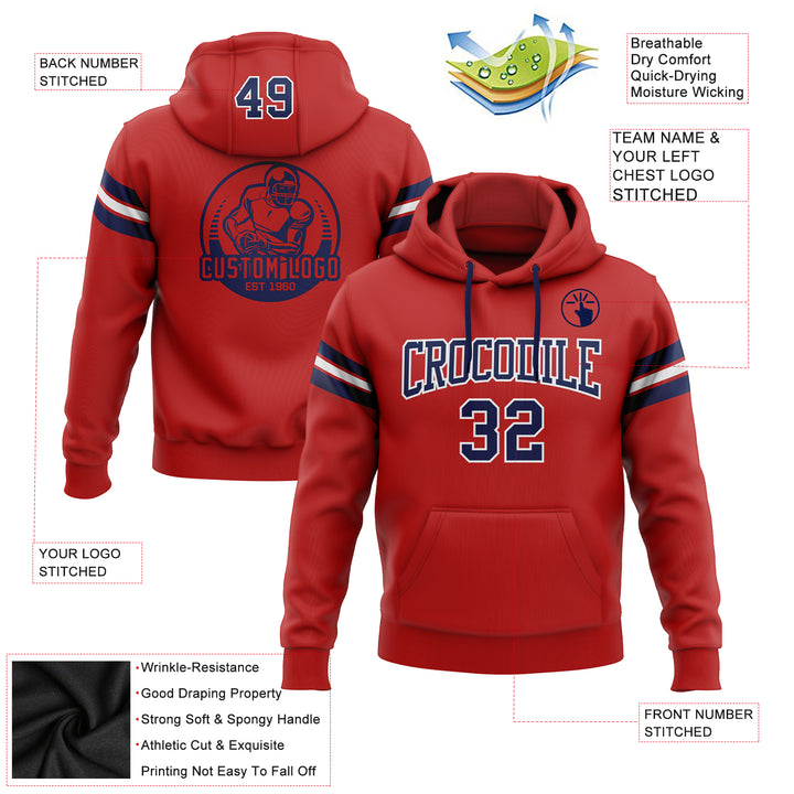 Custom Stitched Red Navy-White Football Pullover Sweatshirt Hoodie