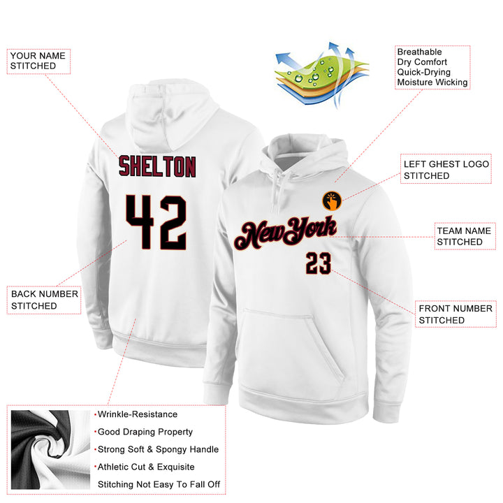 Custom Stitched White Black-Crimson Sports Pullover Sweatshirt Hoodie