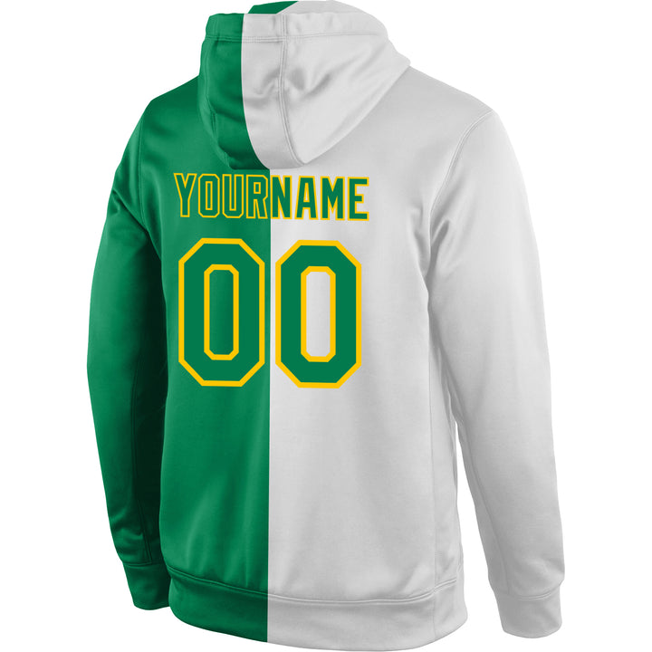 Custom Stitched White Kelly Green-Gold Split Fashion Sports Pullover Sweatshirt Hoodie