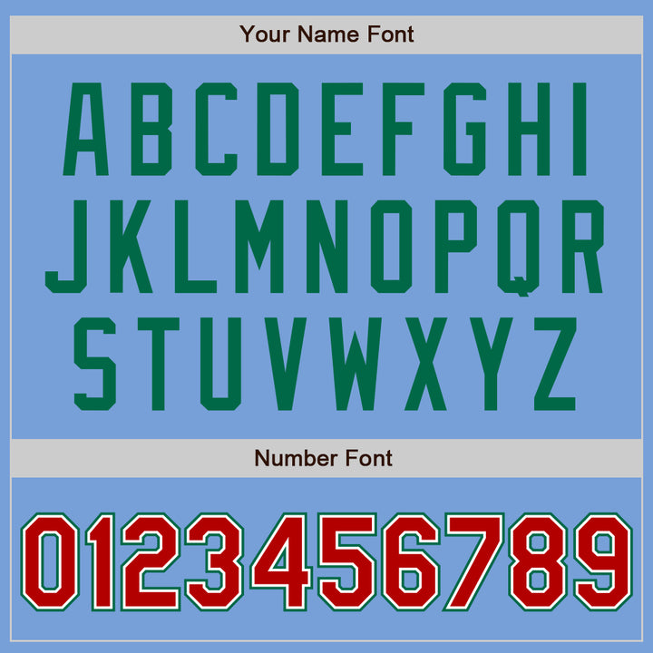 Custom Light Blue Red-Kelly Green Bomber Full-Snap Varsity Letterman Two Tone Jacket