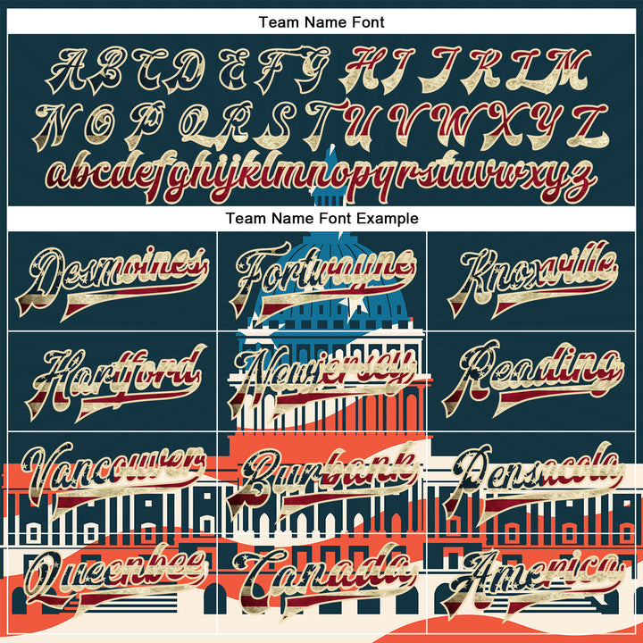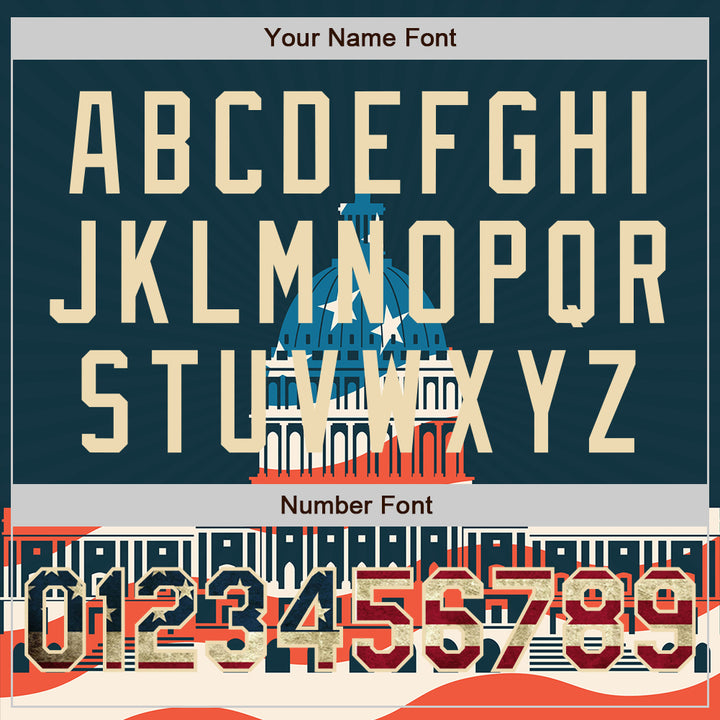 Custom Navy Vintage USA Flag-City Cream United States Congress Building 3D Pattern Design Bomber Full-Snap Varsity Letterman Jacket