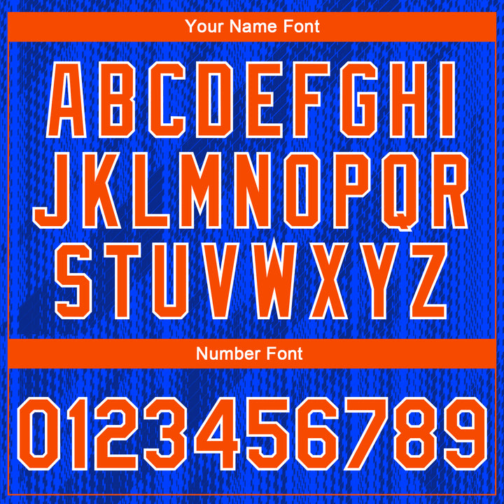 Custom Royal Orange-Navy 3D Pattern Design Bomber Full-Snap Varsity Letterman Jacket