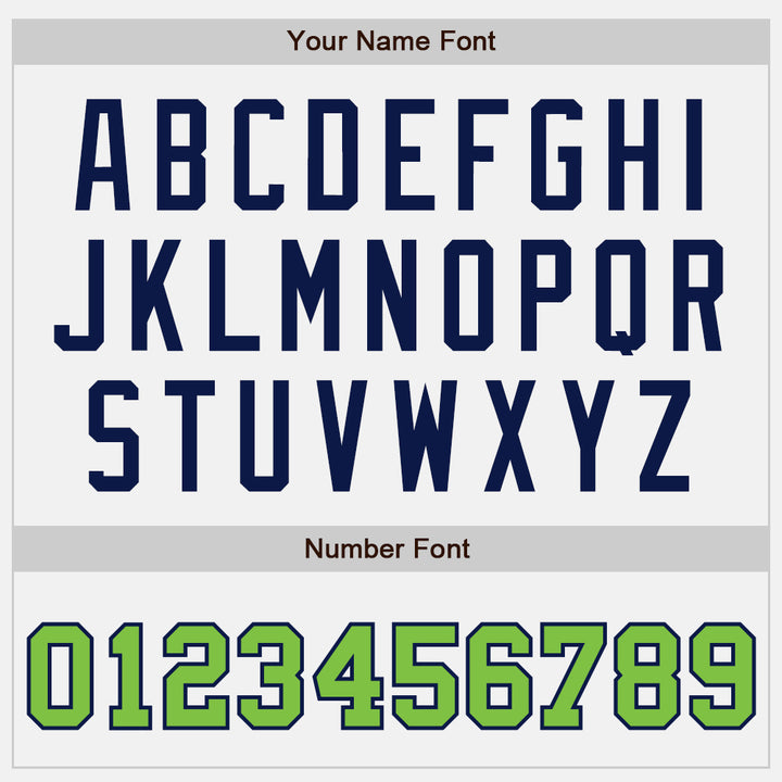 Custom White Neon Green-Navy Bomber Full-Snap Varsity Letterman Two Tone Jacket