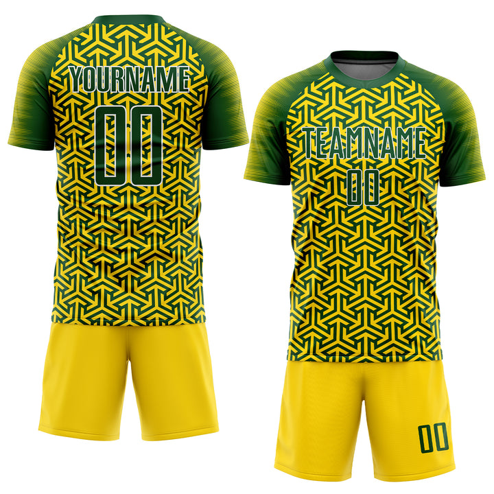 Custom Gold Green-White Sublimation Soccer Uniform Jersey