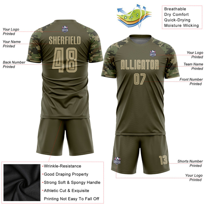 Custom Olive Vegas Gold-Camo Sublimation Salute To Service Soccer Uniform Jersey
