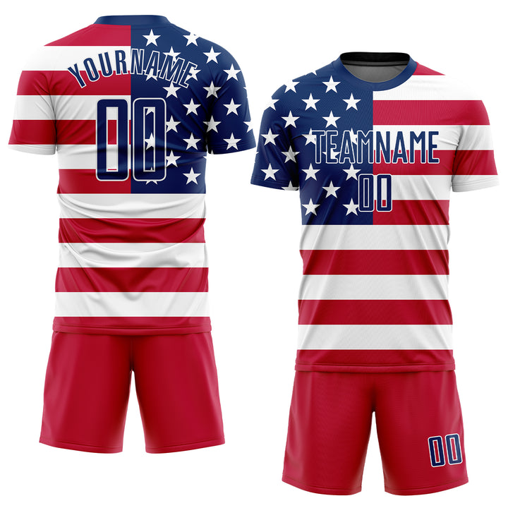 Custom Red Royal-White Sublimation American Flag Soccer Uniform Jersey