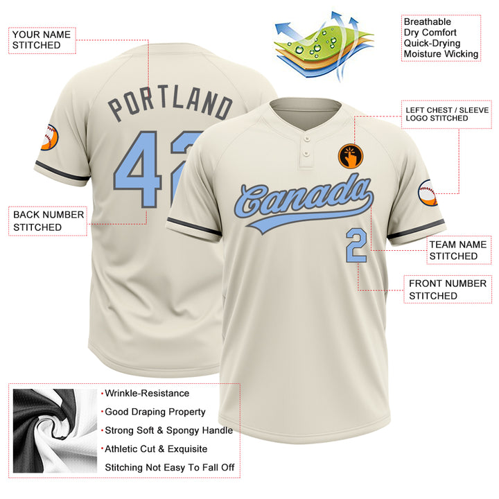 Custom Cream Light Blue-Steel Gray Two-Button Unisex Softball Jersey
