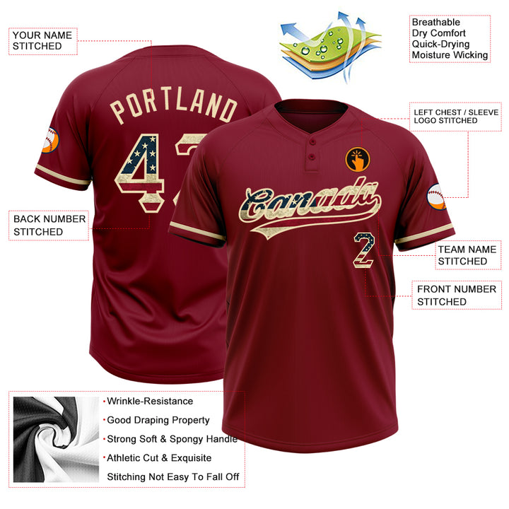 Custom Crimson Vintage USA Flag-City Cream Two-Button Unisex Softball Jersey
