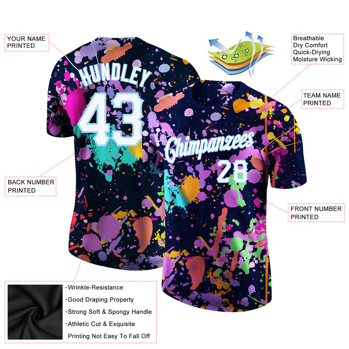 Custom Splashes Graffiti Pattern White-Light Blue 3D Performance T-Shirt