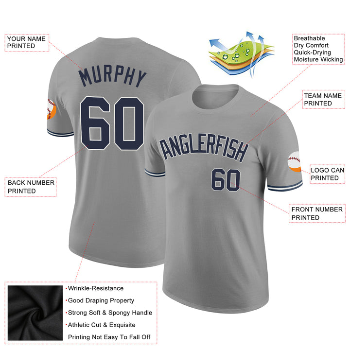 Custom Gray Navy-White Performance T-Shirt