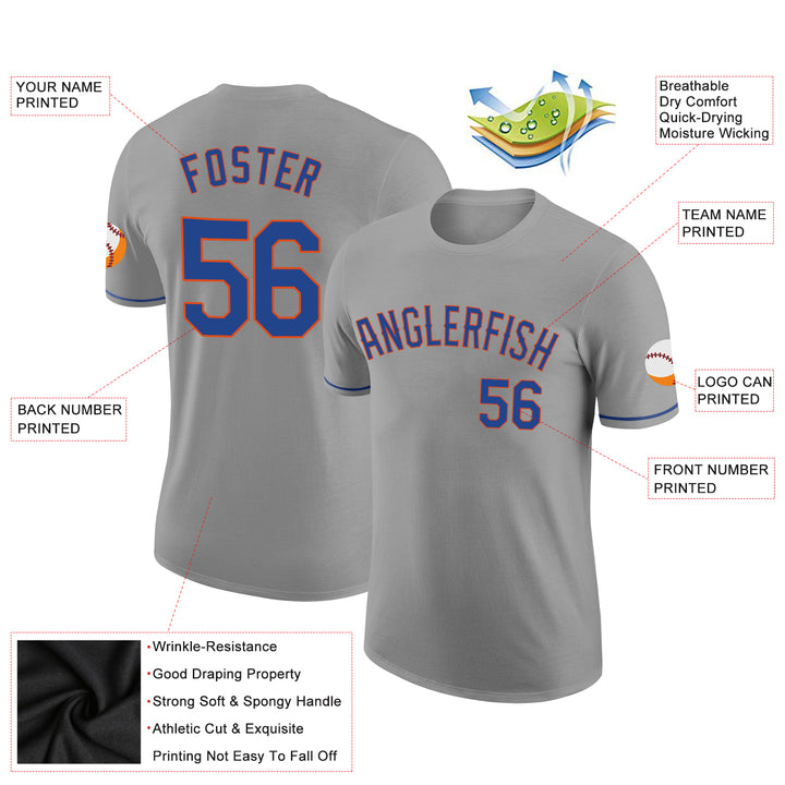 Custom Gray Royal-Orange Performance T-Shirt