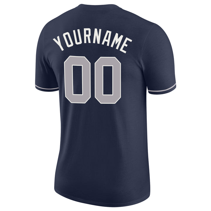 Custom Navy Gray-White Performance T-Shirt