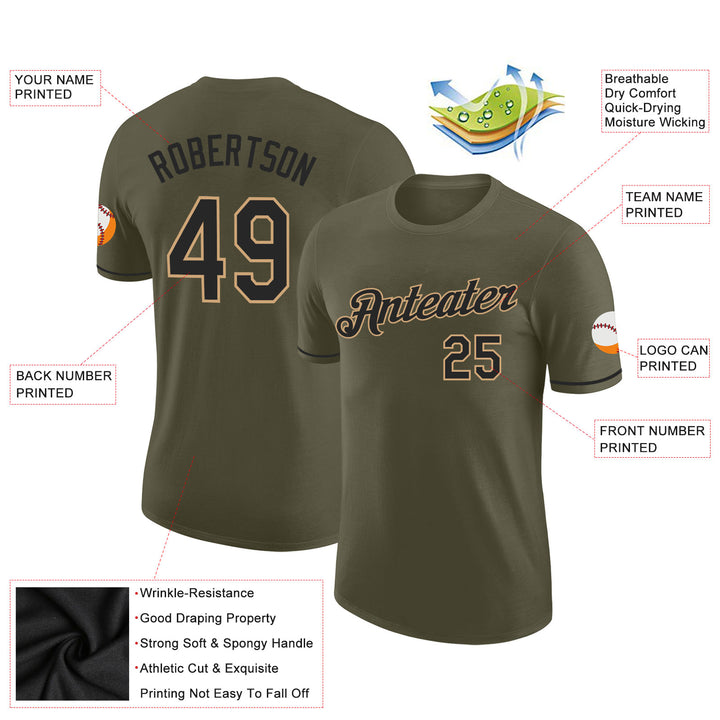Custom Olive Black-Old Gold Performance Salute To Service T-Shirt