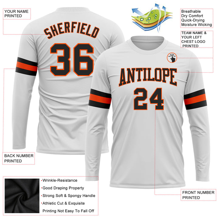 Custom White Black-Orange Long Sleeve Performance T-Shirt