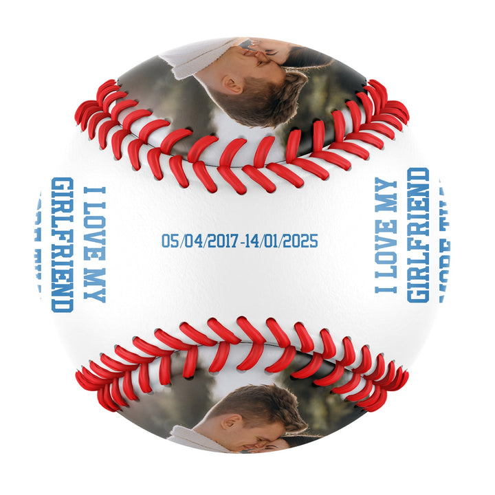 I Love My Girlfriend More Than Baseball Personalized Anniversary Name Date Photo White Baseballs