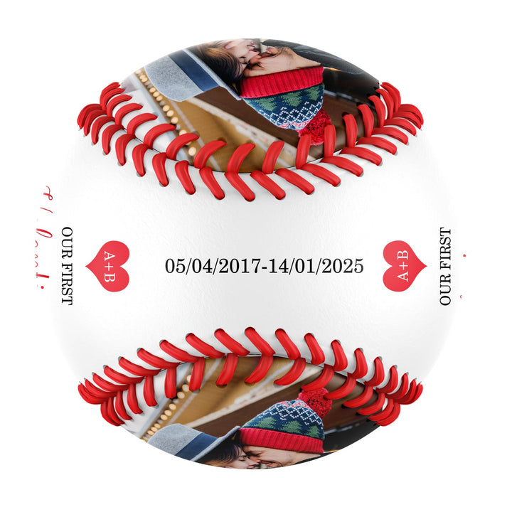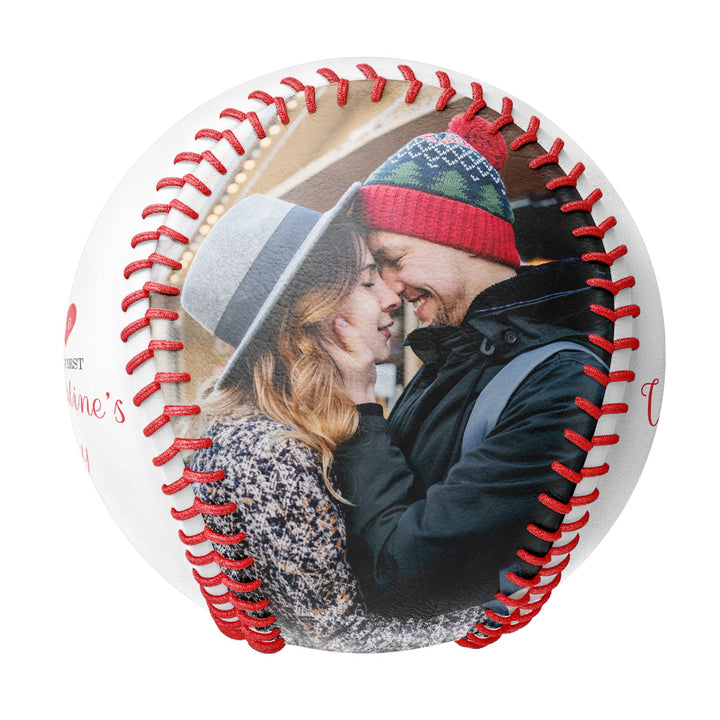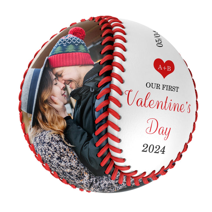 Our First Valentine's Day Personalized Anniversary Name Date Photo White Baseballs