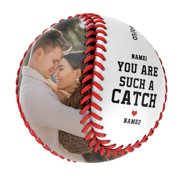 You Are Such A Catch Personalized Anniversary Name Date Photo White Baseballs